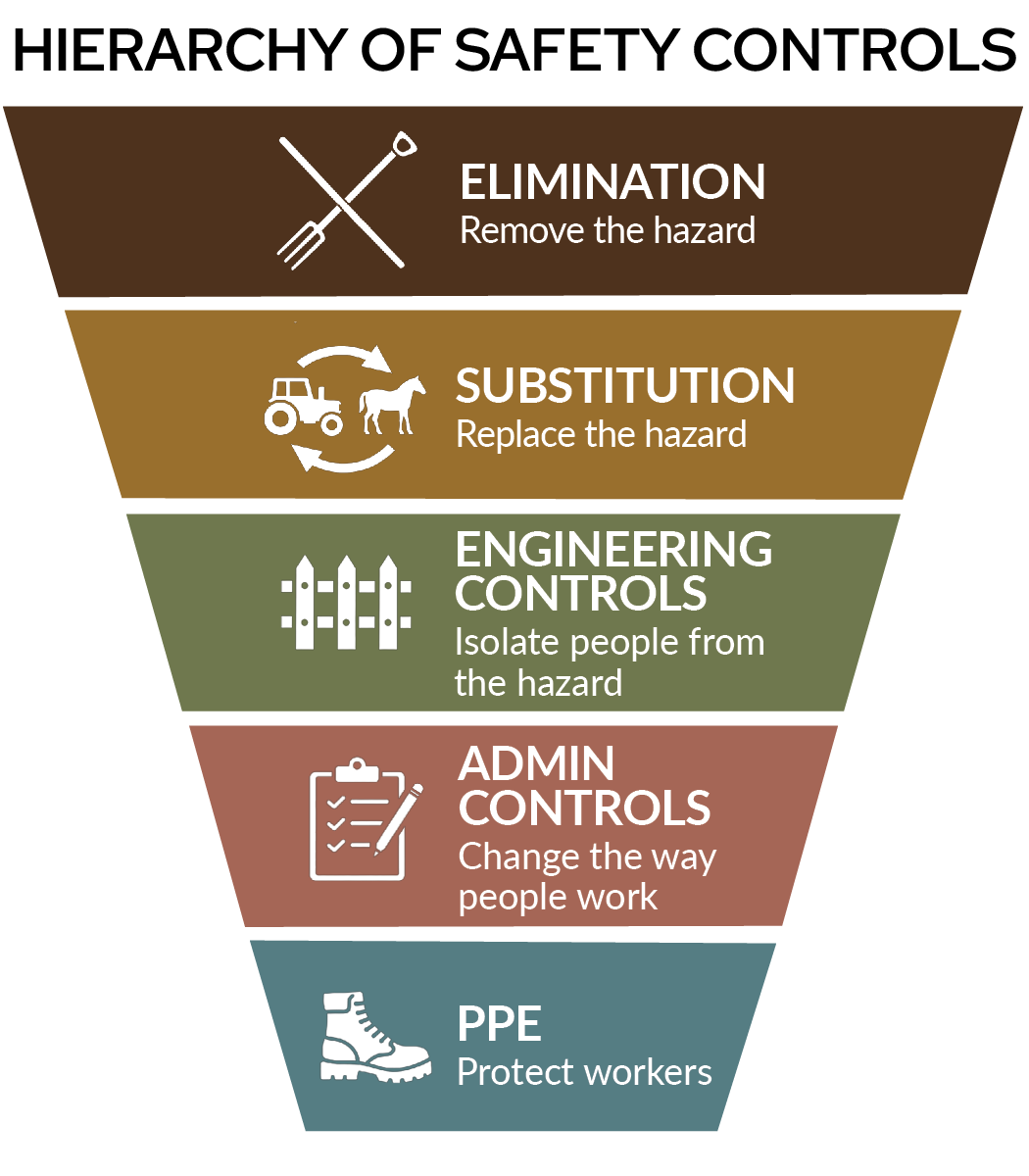 1. Explain the hierarchy of controls at each level
